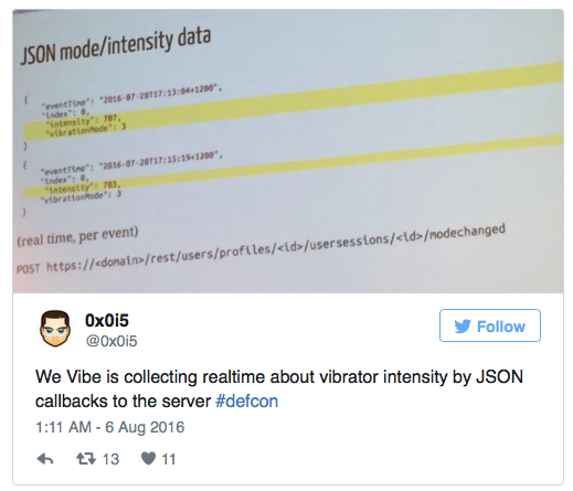 There’s not just the possibility of unfriendly, third party control. The hackers also found the toys send sensitive information such as device temperature and vibration intensity back to the developer, Standard Innovation.